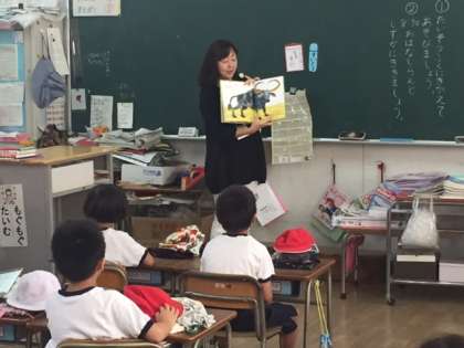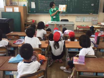 はぐくみネットの方々による朝の会の時間を使った読み聞かせ「おはなしランド」。昨日は1年生の各教室で実施していただきました。1冊目は、動物に関する絵本というテーマで、2クラスは「パンダくん パンダくん なにみてるの?」もう2クラスは「くまさん くまさん なにみてるの?」(共に エリック=カール 絵 ビル=マーチン 文 おおつき みずえ 訳)を、2冊目は4クラスとも「「歯が ぬけた」(中川ひろたか 作 大島妙子 絵)を読んでいただきました。