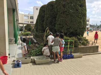 ヒマワリやオシロイバナも無事でした。子どもたちが朝から種とりをしていました。
