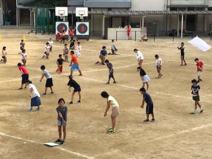 一昨日の放課後、応援団の子どもたちが運動場で練習をしていました。5〜6年生の希望者で構成されています。「5年生になったら応援団に入りたい」とお兄さん、お姉さんに憧れている下級生も多いようです。