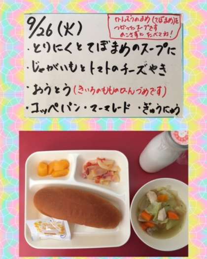 昨年まで、『じゃがいもとトマトの重ね焼き』という献立名でしたが、アレルギーのある児童が多い乳製品であるチーズの誤食を防ぐため、献立名にチーズが入りました!!!