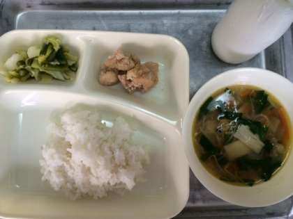 ☆鶏肉のからあげ ☆中華スープ ☆キャベツと三度豆の甘酢あえ