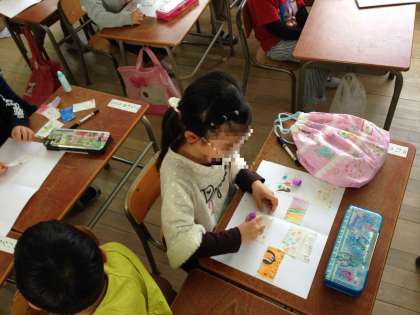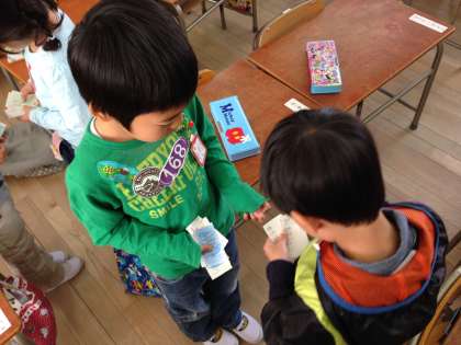 生活科の『ともだち いっぱい』という学習で、名前を書いたカードを渡し合いました。