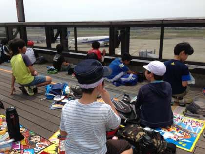 お昼は、青空の下、伊丹空港の展望台でお弁当を食べました。