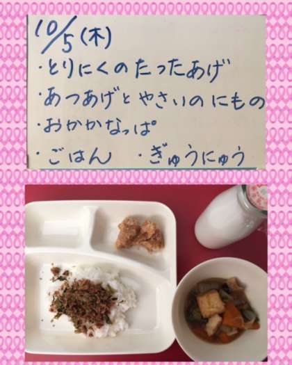 子ども達に大人気の『鶏肉のたつたあげ』はしょうが汁、料理酒、こいくちしょうゆで下味をつけ、片栗粉をまぶして揚げます☆☆☆