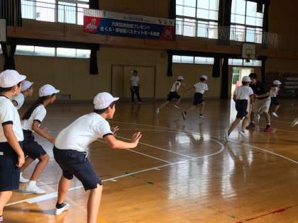5年生で「大阪市信用金庫プレゼンツ さくら・夢授業バスケットボール教室」が開催されました。大阪エヴェッサからお二人のコーチが来てくださいました。ウォーミングアップ、ドリブル、シュートを教えていただきました。コーチが子どもたちに「今日教えてもらったからバスケットボールがうまくなるということはありません。ドリブル、シュートのポイントを教えますから、継続して自分で練習することが大切です。そうすればうまくなります。」とおっしゃっていました。いろいろなことに共通して言えることだと思います。