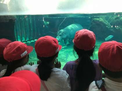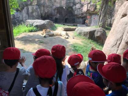 午前中、北園を見学しました。子どもたちに人気のカバ、フラミンゴ、レッサーパンダ、シマウマ、トラ、ライオンなどに出会いました。