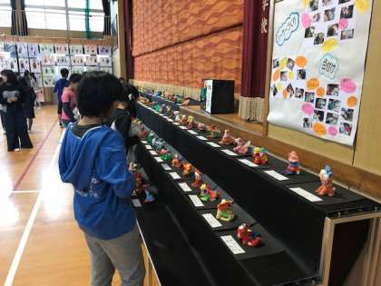 今日、明日と講堂で図工展を開催しています。