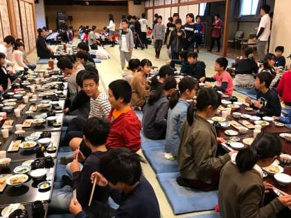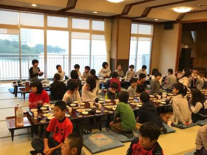 朝食は、15分早めました。まもなく、みんな食べ終わります。