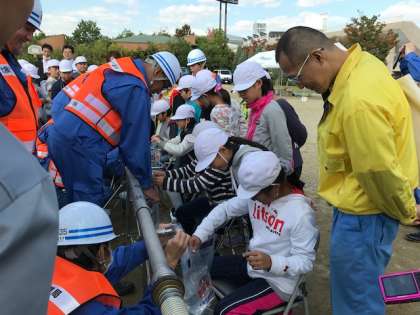 初めての体験でしたが、子どもたちは説明をよく聞いて、パックに上手に水を入れていました。
