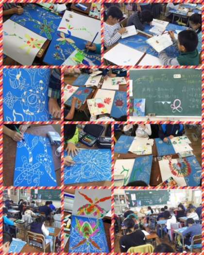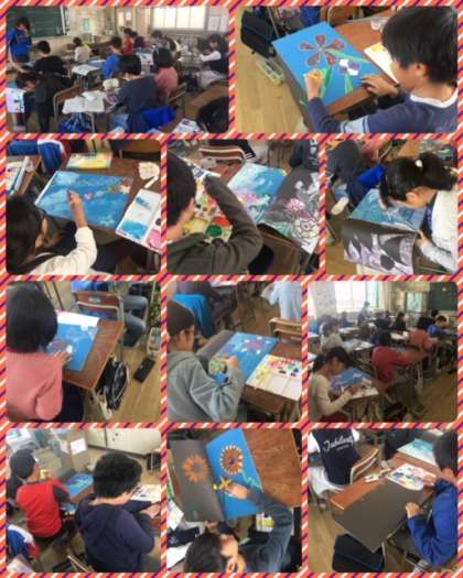 『世界に1つだけの花』をテーマに彫刻刀て木板を彫り、色をのせます(^o^)