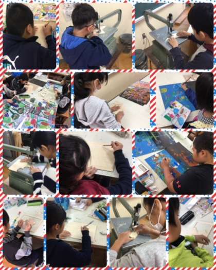 2色版画を終えた児童からウッドパズル作りにとりかかっています♪♪♪