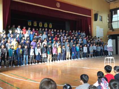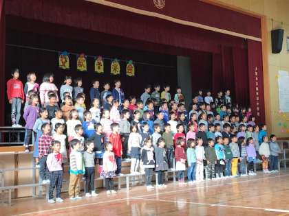 交歓音楽会 児童相互鑑賞を行いました。昨年度までは4・5・6年生の演奏を1・2・3年生が鑑賞するという形式でした。でも、本年度から、全学年が演奏をし、相互に鑑賞し合うという形に変更しました。第一部は1・3・5年生の演奏でした。