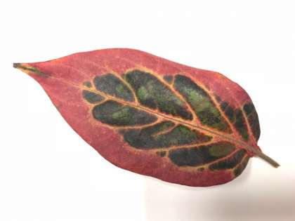 寒い日が続く毎日です。校庭にも晩秋を思わせる紅葉した落ち葉が見られます。今朝、いつものように玄関で子どもたちを迎えていると、「きれいな葉っぱが落ちてました。」と女の子が写真のような葉っぱをくれました。葉っぱを見てきれいと思う感性がすばらしいと思います。