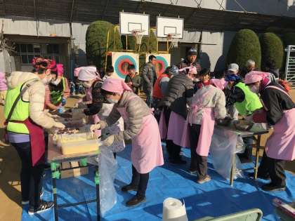 今日は恒例のPTA主催「もちつき大会」が開催されています。8時半の開門ですが、先頭の子どもは8時から並んでいたというくらい子どもたちが楽しみにしている行事の一つです。PTAのお父さん、お母さんも当日までの準備、今日のお世話と子どもたちの笑顔のために一生懸命活動してくださっています。
