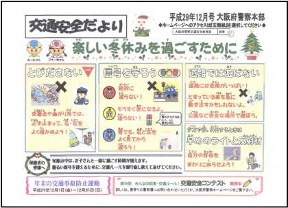交通安全だより12月号を掲載しました。詳しくは →こちらをクリックしてご覧ください。