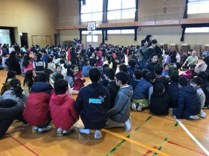今日は2・4・6年生の児童集会がありました。「仲間作りゲーム」をしました。集会委員の子どもが手をたたいた数だけ友だちが集まったグループは座ります。「男の子 ○○○、女の子○○○○○」学年が違う男女グループがあちこちでできていました。