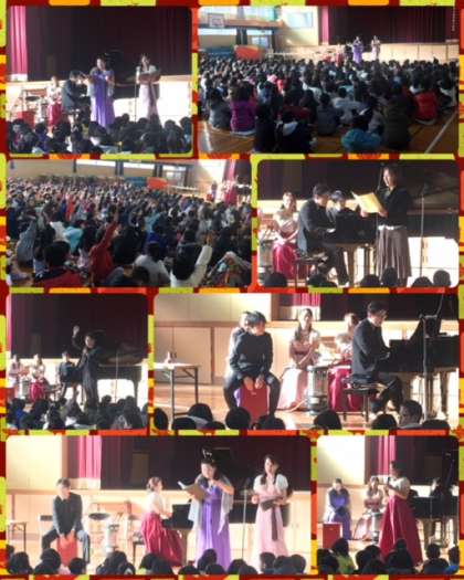 今日は、本年度第6回目の土曜授業として、恒例の「音楽コンサート」を開催しました。ピアノ、声楽、作曲・編曲さまざまな分野のプロの方、5名にお越しいただき、心温まるひと時を過ごすことができました。