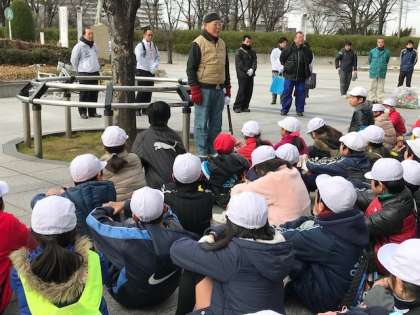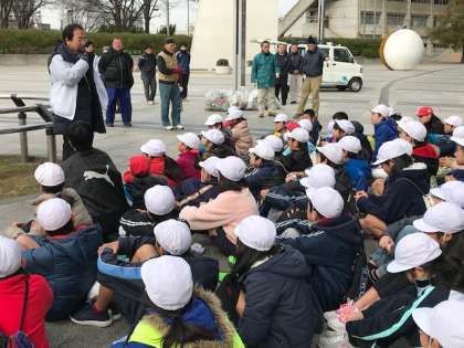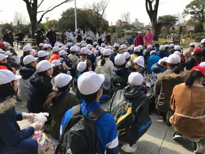 清掃後には、連合町会長さん、東住吉区長さんから子どもたちにメッセージをいただきました。今日の経験を生かして自分たちが決してごみを捨てる側にならないこと、みんなでこの南田辺の町を住みよい街にすることなどをお話いただきました。この学習の発展として、6年生は南田辺商店街での職業体験も実施する予定です。各担任の先生たちも子どもたちの力を多面的に伸ばそうと、さまざまな学習を積極的に取り入れています。