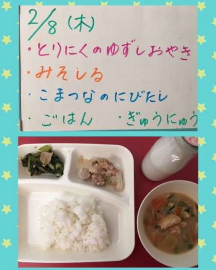 『鶏肉のゆず塩焼き』は、鶏肉とたまねぎに塩、ゆず果汁で下味をつけ、焼き物機で焼きます☆☆☆ゆずの風味をきかせた一品です♪