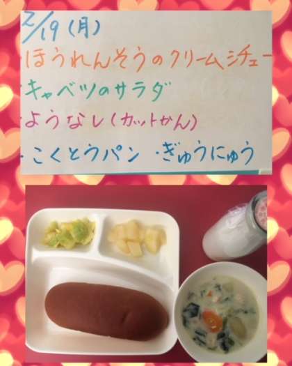 『ほうれん草のクリームシチュー』は、旬のほうれん草を使用した子ども達に大人気の献立です☆☆☆