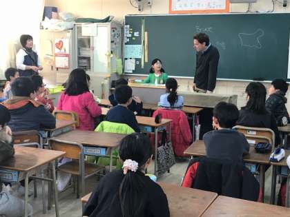 昨日、4年生は英語活動がありました。ゲストティーチャーにBruce Ulrichという初めての先生をお招きしました。題材は「好きなスポーツは何?」でした。始めのあいさつ、先生や、子どもたちの自己紹介の後、「Baseball」「Volleyball」「Table Teninis」などの発音練習、キーワードゲームなどをしました。Bruce先生から、「南田辺の子どもたちはとても態度がよく、発音もきれいですね。」とほめていただきました。
