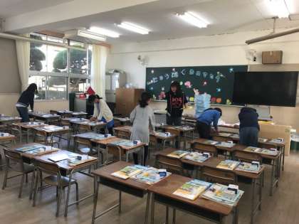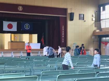 明日は平成30年度の入学式です。今日、新6年生は、式場の準備や1年生の教室の清掃、配布物の準備などを手伝ってくれました。もう、すっかり最高学年の雰囲気です。新2年生は、お迎えの言葉の練習をしました。