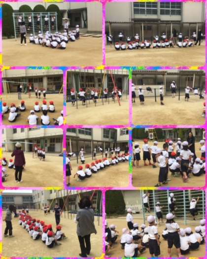 クラスごとに、のぼり棒、うんてい、てつぼう、ろくぼくを順番に回って使用していました♪♪♪