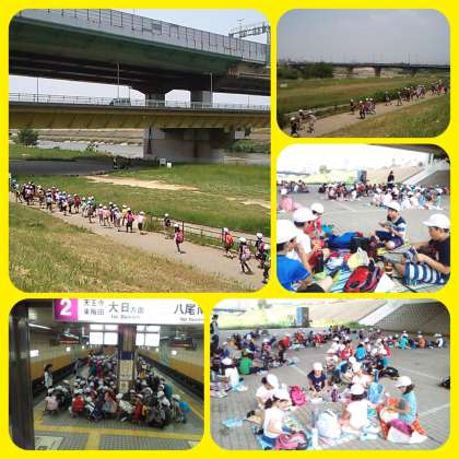 見学の後は、焼却工場横の大和川河川敷でお弁当を食べました。