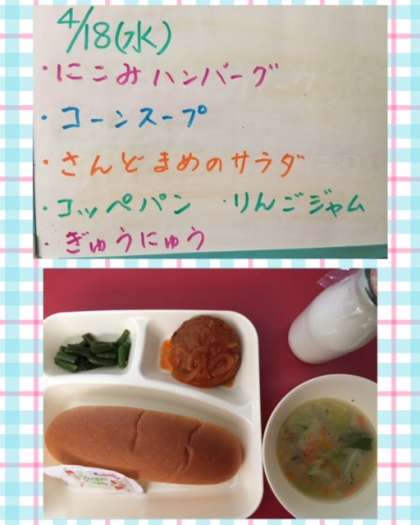 『コーンスープ』は、キャベツ、コーン、にんじん、パセリを使用し、スイートコーン缶でとろみとコクをいかしたスープです☆☆☆