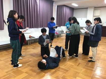 子どもの状態の記録、保護者への連絡、エピペンの使用、救急車要請など、組織的に素早く対応する練習をしました。