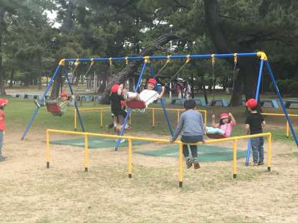 先程の公園で、30分間遊んだ後、木々の間を歩き、二つ目の公園へ。
