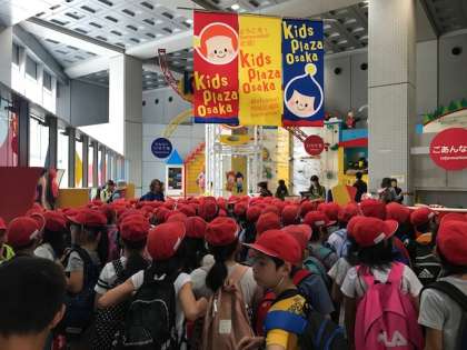 3年生は、遠足でキッズプラザ 大阪に来ています。たくさんの学校が来ていて満員ですが、子どもたちはグループに分かれて各コーナーを楽しんでいます。
