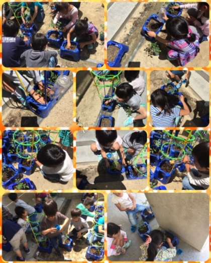 今日は2年生が、ミニトマトの苗を植えていました☆☆☆