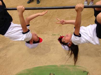 ぶら下がったり、回ってみたり、いろんな技に挑戦中です。