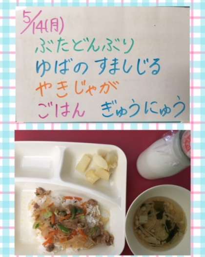 『豚丼』は、豚肉を主材に、糸こんにゃく、たまねぎ、にんじん、青ネギを使用し、甘辛く煮、ご飯にのせて食べます☆☆☆