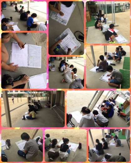 写生会の練習の為、運動場から見た校舎を描いていました(^o^)