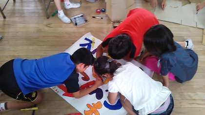 年に1度のとても楽しみにしていた行事であり、さらに明日は土曜授業ということもあって、子どもたちは張り切ってお店の準備をしています。準備が終わったクラスは、お店番役とお客役とに分かれてリハーサルもして、明日に備えています。