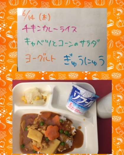 『チキンカレーライス』は、鶏肉を主材に、じゃがいも、たまねぎ、にんじんを使用しています☆☆☆
