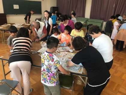 今年の目標は「みんな笑顔で安全に、南田辺エコカーニバル」です。開会式は担当の子どもたちが進行し、ルール説明もしていました。はぐくみネットの方々は、今年も「紙でっぽう」の作り方を教えて下さいました。広告の紙1枚からこんなおもちゃが作れるという体験をし、子どもたちは楽しそうに「パン!」という音を鳴らして遊んでいました。お家に持ち帰った紙でっぽうはすぐに捨ててしまわず、保護者の方も一緒に楽しんでください。
