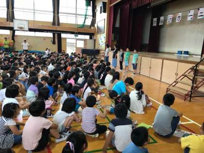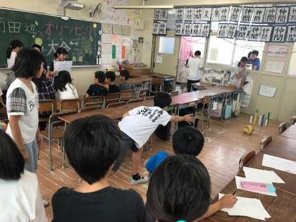 「先生もどうぞ!」と勧めてもらい、いくつかの教室で楽しませてもらいました。閉会式では、「片付けまでが南田辺カーニバルです。」と担当の子どもたちがみんなに訴えます。ごみの分別、店の飾りなど再利用できるものはリユースすることなど三つ目の目標「エコカーニバル」を呼びかけていました。