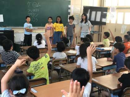 今週も6年生が各教室を訪れ、なかよしタイムをしていました。今日は「言葉あてクイズ」「なぞなぞ」「タンブリンの音の数だけ友達が集まってグループを作るゲーム」「じゃんけんゲーム」をして楽しいひと時を過ごしていました。