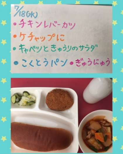 『チキンレバーカツ』は、ほんのりカレー味がついていて食べやすく、不足しがちな鉄やビタミンAをとることが出来る、子ども達に人気のある献立です☆☆☆