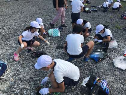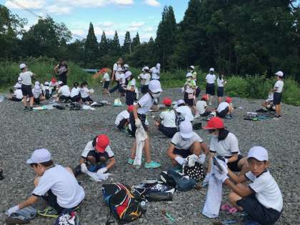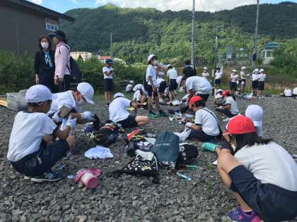 焼き板磨きをしています。タワシでススを落とした後、タオルで磨きます。つるつるになりました。明日、どんな絵を描くのか楽しみです。