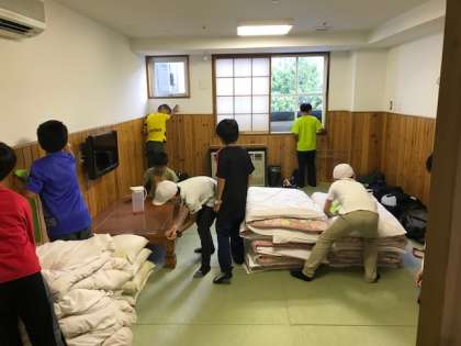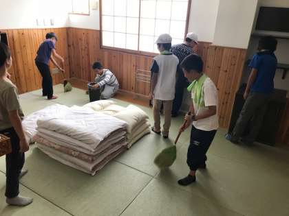 朝食の後は、3日間使わせてもらった部屋の掃除です。生活班のメンバーで協力して、「もとよりきれいに」を目指して掃除しました。