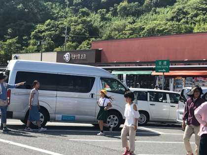 赤松サービスエリアでトイレ休憩を終えました。学校に向かって出発します。