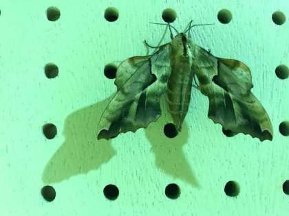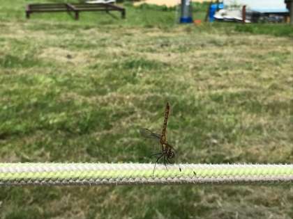 子どもたちは、ハチ高原で、いろいろな花や昆虫を見つけていました。高原でトンボ、魚つかみでバッタ、体育館の中で蛾?蝶?。高原で見たトンボは、奇妙な格好でロープに止まっていました。お尻をピンと上げていたのです。調べてみると、このスタイルの方が日光を受ける面積が狭くなり、体温を下げることができるという説、それ以外にもいくつか説があるとありましたが、この頃の暑さからすると、この説が有力な気がします。