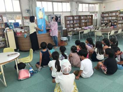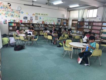 プール指導の前後を利用して、子どもたちは図書館開放に参加しています。昨日からの3日間はPTA図書委員の方々が、図書の整理や清掃、そして、読み聞かせを行ってくださったいます。子どもたちは、クーラーが効き涼しい中で、読書の世界に浸っています。