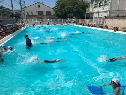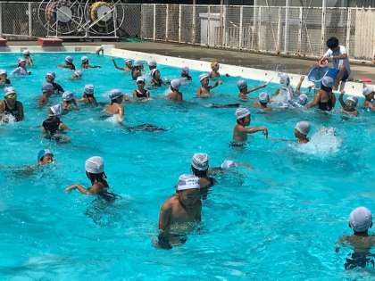 本年度のプール水泳は本日で終了しました。「暑さ指数」とにらめっこしながらのプール水泳でしたが、事故なく無事終了できてよかったです。子どもたちはまだ残暑厳しい中、気持ちよさそうに泳いでいました。それぞれ自分の目標を達成できたでしょうか?ご家庭でも、是非尋ねてみてください。