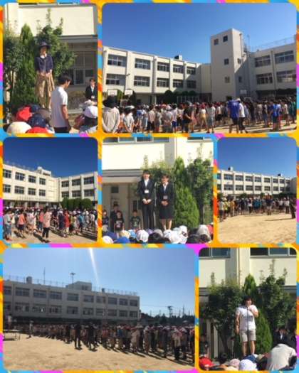 今日は、「防災の日」「防災週間」そして、明日大阪に来るであろうと予想されている台風21号に備えましょうという話をしました。