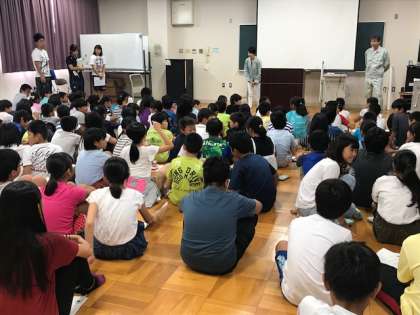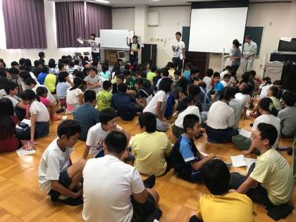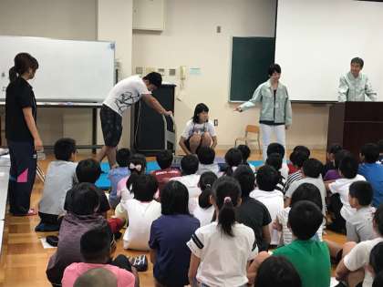 南田辺地域防災リーダー(防災士)の方、お二人にお越しいただき、「防災教室」を実施していただきました。地震はなぜ起こるのかについて、DVDを見せていただいたり、お話を伺ったりしました。また、地震には、時間は短いが強く激しい揺れがい起こる「内陸型地震」と、大きく長い揺れが来る「海溝型地震」があることなどを学びました。クラスごとに問題が出され、相談しながら考えるという活動もありました。